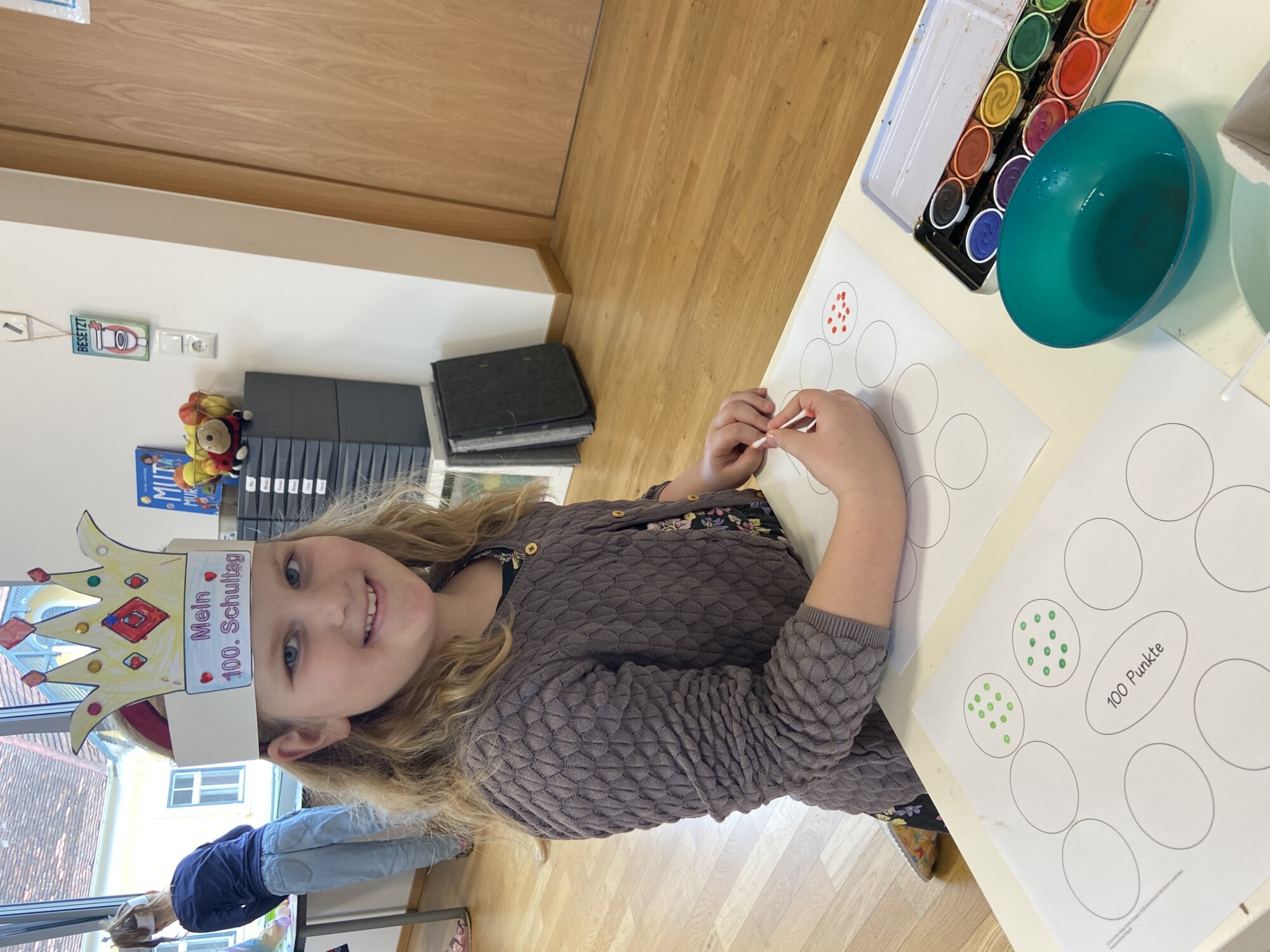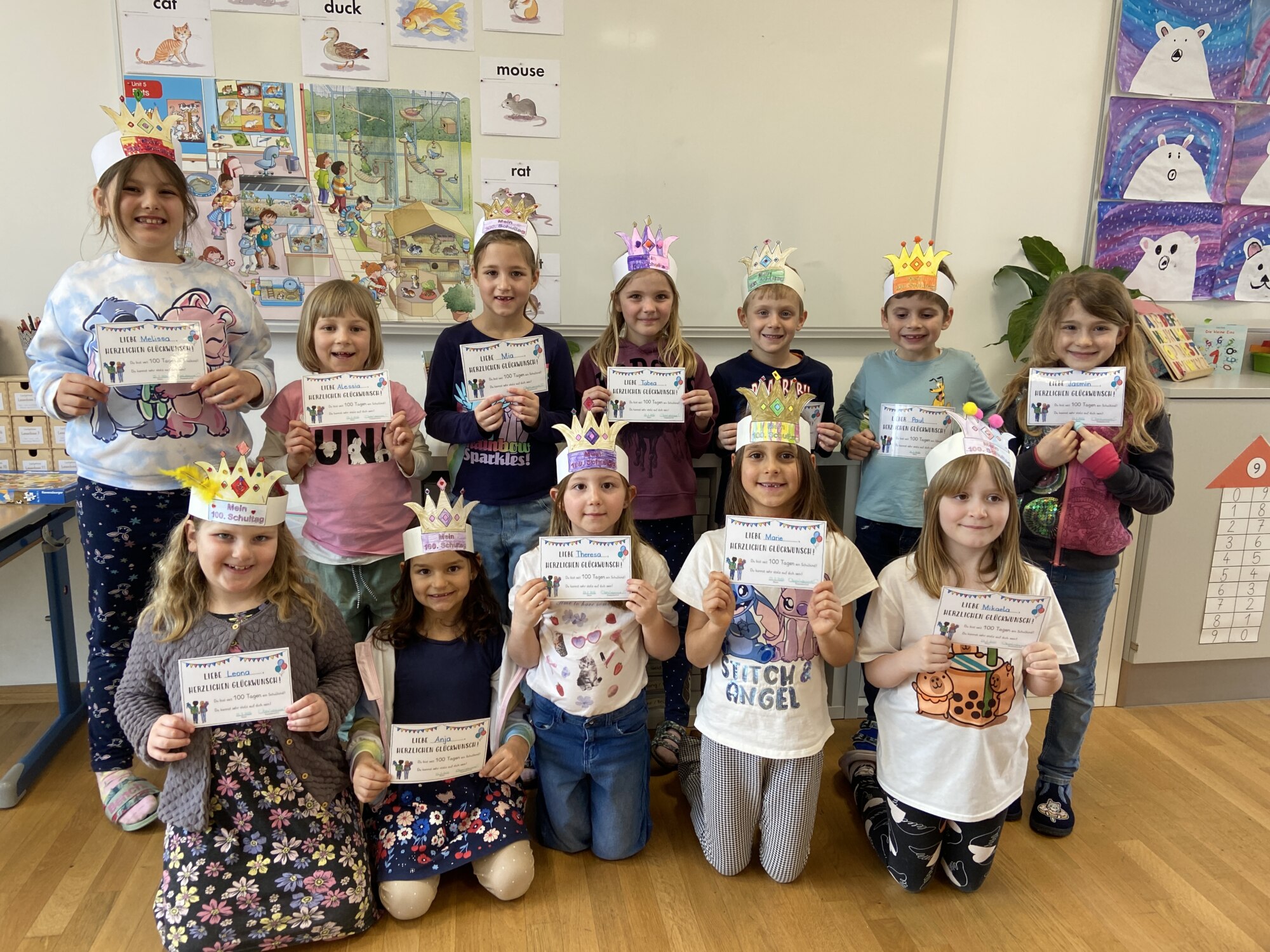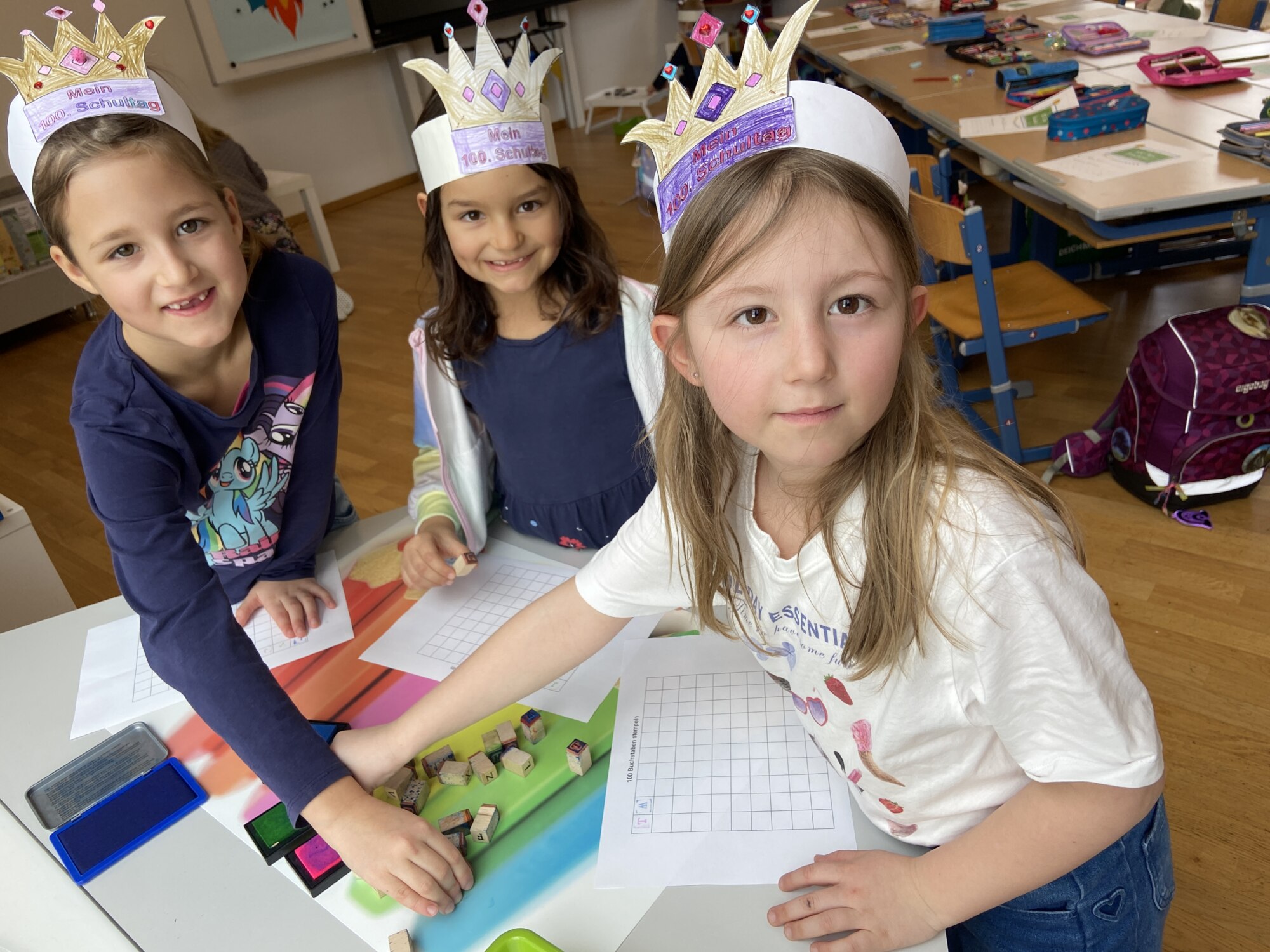Die Schülerinnen und Schüler der 1. Klasse haben heute ihren 100. Schultag. Das muss gefeiert werden!