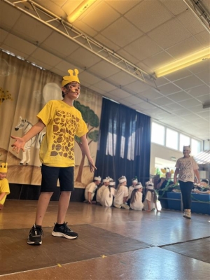 Das Stück handelt von einer Zebra- und Giraffenherde. Die Tiere leben schon lange Zeit nebeneinander, wollen aber nichts miteinander zu tun haben, bis ein Zebra- und ein Giraffenkind ihre Vorurteile über den Haufen werfen und Freundschaft schließen. Lustige Erdmännchen und angriffslustige Löwen sorgten für reichlich Spannung. Viele Tänze brachten Abwechslung ins Geschehen. Die Kinder glänzten in ihren Rollen und begeisterten mit ihrer Freude das Publikum.