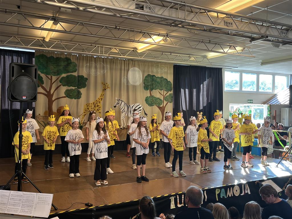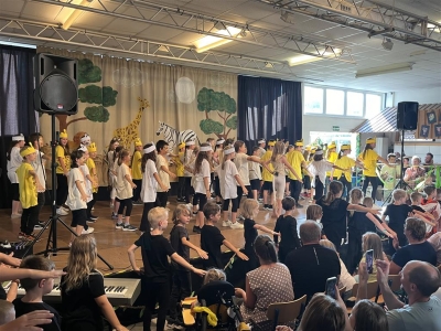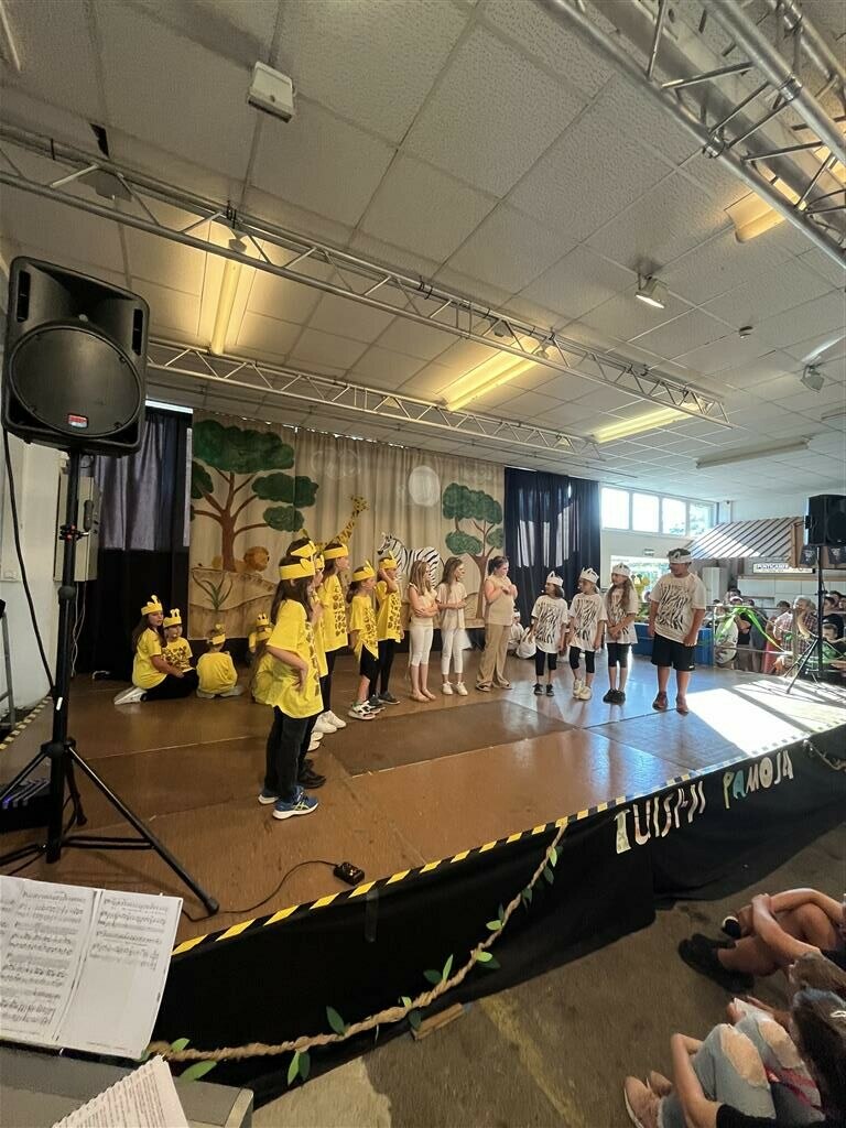 „Tuishi Pamoja“ (sprich tuischi pamodscha) ist Swahili und bedeutet so viel wie „Wir wollen zusammen leben.“ Dieses schulstufen- und klassenübergreifende Projekt hat die Schulgemeinschaft richtig zusammengeschweißt. Alle Schülerinnen und Schüler der Volksschule Sankt Johann bei Herberstein haben über das ganze Schuljahr hinweg das Musical einstudiert, Dekoration und Bühnenbild gestaltet sowie Akrobatik trainiert. Das Publikum wurde auf eine wunderbare Reise nach Afrika mitgenommen und erlebte eine zauberhafte Geschichte über Freundschaft und Zusammenhalt.